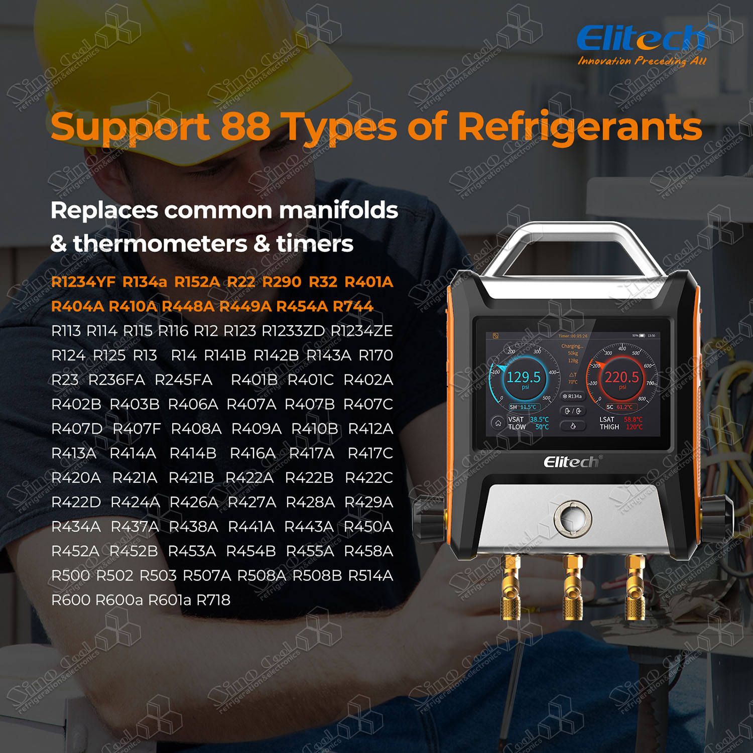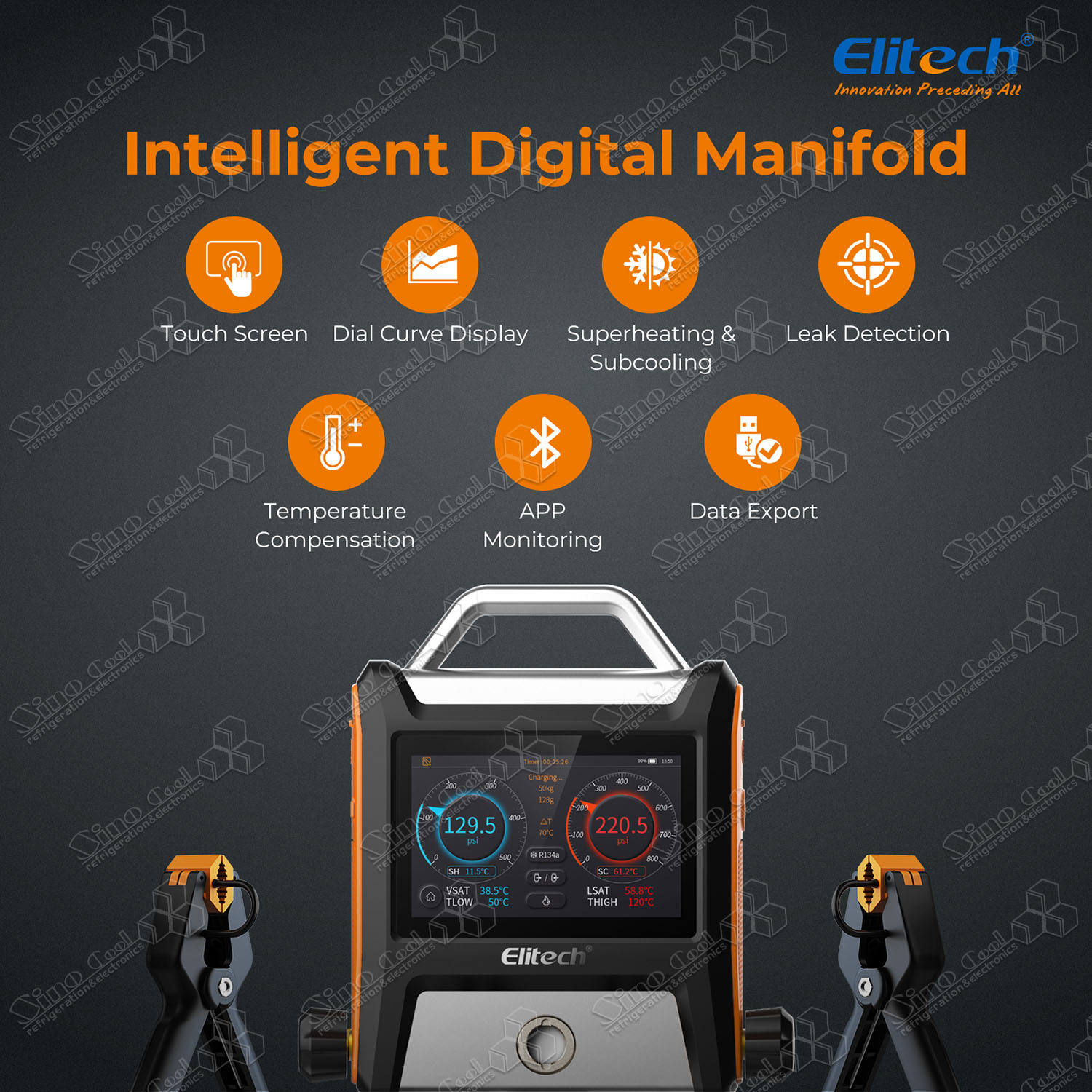 * UPGRADED ELITECH TOOLS APP(ioS and Android): An intergraded app, that allows users to manage all Elitech tools as vacuum pump, digital manifold, vacuum gauge, pressure gauge, refrigerant charging scale on one app, more efficient and more intelligent. * SYSTEM LEAKAGE TESTING: Monitoring the process of pressure holding and vacuum leakage test precisely with temperature compensation. * SMART TOUCH SCREEN: Elitech MS-2000 digital manifold adopts multiple HVAC tools in one unit. It shows changes in vacuum, pressure, and temperature in clear data, and graph display supports data monitoring and analysis in real-time, 100,000 points of data can be recorded and exported by USB. * AUTOMATIC CALCULATION: Measure the superheating and subcooling temperature of 88 refrigerants automatically, refrigerants used frequently can be saved on top.